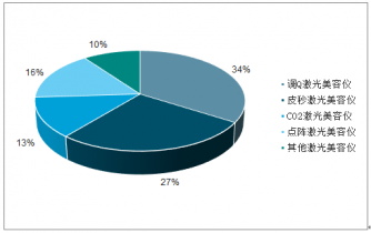根據(jù)產(chǎn)品的應(yīng)用效果和需求特征統(tǒng)計(jì)出美容市場(chǎng)激光美容產(chǎn)品的結(jié)構(gòu)特征,以調(diào)Q激光美容儀器為主,市場(chǎng)應(yīng)用占比最高達(dá)到34%,皮秒激光美容儀在其高成本和高應(yīng)用需求的促進(jìn)下規(guī)模占比位居第二達(dá)到27%。點(diǎn)陣激光美容儀和CO2激光美容儀的應(yīng)用占比均低于20%。
