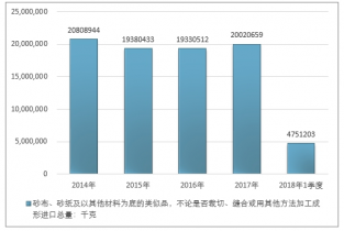 2016年我國砂布、砂紙及以其他材料為底的類似品,不論是否裁切、縫合或用其他方法加工成形進(jìn)口總量19330512千克 ,2017年進(jìn)口總量20020659千克 ;2019年1季度進(jìn)口總量4751203千克 。