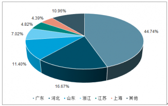 截止2017年底中國燃氣壁掛爐生產(chǎn)企業(yè)區(qū)域分布