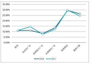 2016-2017年中國不同形式網(wǎng)絡(luò)媒體廣告占比情況