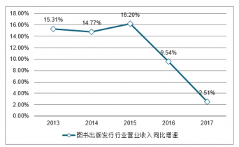 2013-2017圖書(shū)出版發(fā)行行業(yè)營(yíng)業(yè)收入及同比增速