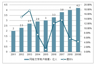 2011-2019E 中國網絡文學用戶規模及增長率