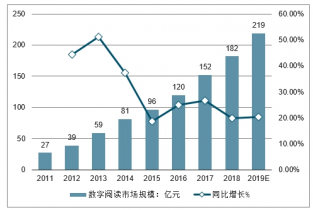 2011-2019 數字閱讀市場規模及增速