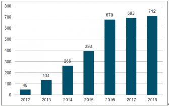 2012-2018年全國網(wǎng)上藥店數(shù)量