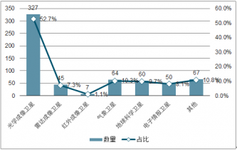 截至2019年4月,全球遙感衛(wèi)星數(shù)量達到684顆,較2017年末增加了64顆。各類遙感衛(wèi)星來看,截至2017年8月31日,光學成像衛(wèi)星為327顆,占遙感衛(wèi)星總量的52.7%;處于太陽同步軌道上的活躍遙感衛(wèi)星數(shù)量為415顆,占比72.2%。