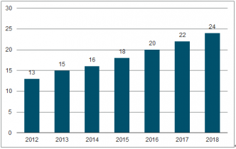 2012-2018年中國(guó)遙感衛(wèi)星市場(chǎng)規(guī)模及增長(zhǎng)