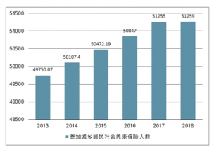 2019年1月中國(guó)參加城鄉(xiāng)居民社會(huì)養(yǎng)老保險(xiǎn)人數(shù)為51259萬(wàn)人,2017年1-12月中國(guó)參加城鄉(xiāng)居民社會(huì)養(yǎng)老保險(xiǎn)人數(shù)為51255萬(wàn)人。