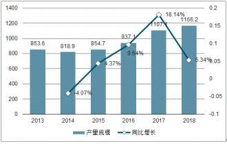 圖表14:2016-2019年我國硅鋼產量及增速變化趨勢圖(單位:萬噸,%)