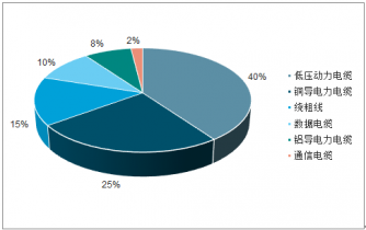 2017年,低壓動力電纜占全年絕緣電線電纜市場需求總額的40%,其次是銅導(dǎo)電力電纜,占25%,繞組線占15%,數(shù)據(jù)電纜占10%,鋁導(dǎo)電力電纜占8%,通信電纜占2%。