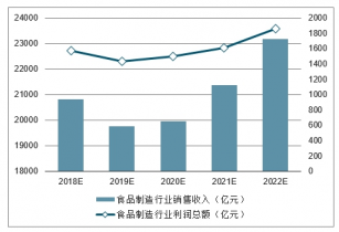 2018-2022年中國食品制造行業(yè)銷售收入、利潤總額預測