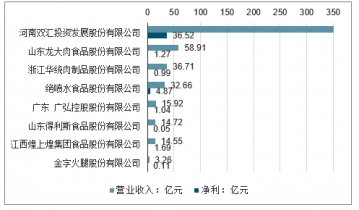 2019年前三季度肉制品行業(yè)A股上市企業(yè)營收及凈利排情況