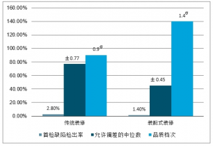 對(duì)比裝配式精裝和傳統(tǒng)裝修的驗(yàn)收檢驗(yàn),首檢缺陷檢出率對(duì)比傳統(tǒng)住宅精裝修的 2.8%,缺陷檢出率降至 1.4%,環(huán)比下降 50%,證明裝配式因做好事前和事中控制,把 事后補(bǔ)救損失減少到預(yù)期范圍。允許偏差的中位數(shù)相對(duì)標(biāo)準(zhǔn)差從±0.77 縮小到±0.45,品 質(zhì)檔次從 0.9 西格瑪提升到 1.4 西格瑪,可視為質(zhì)量提升。