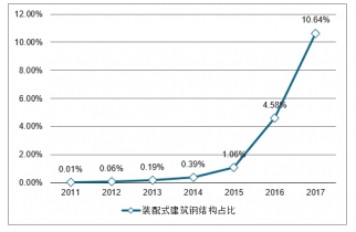 2011-2017年中國裝配式建筑鋼結(jié)構(gòu)占比走勢