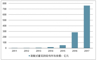 2011-2017年我國(guó)裝配式建筑鋼結(jié)構(gòu)市場(chǎng)規(guī)模走勢(shì)