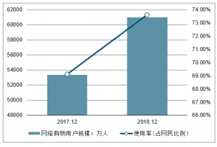 2017-2018年中國網絡購物用戶規模及使用率