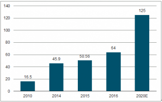 分子診斷是精準(zhǔn)醫(yī)療的技術(shù)基礎(chǔ),也是IVD增速最快的子行業(yè)。由于分子診斷是從基因?qū)哟芜M(jìn)行檢測,因此檢測靈敏度和準(zhǔn)確性相對較高,可在感染初期識別病毒或者提早確認(rèn)基因缺陷,從而提供個性化的醫(yī)療診斷服務(wù),主要應(yīng)用于遺傳病、傳染性疾病、腫瘤等疾病的檢測與診斷。分子診斷逐步由以PCR為主變成以基因測序為主,以 PCR、熒光原位雜交(FISH)、基因芯片為輔的多種檢測手段共存的分子診斷市場。基因測序因為其高通量、操作方便、信息量豐富、應(yīng)用范圍寬等優(yōu)點成為最有前途的檢測技術(shù),目前屬于“黃金投資時期”。2010 年我國分子診斷市場規(guī)模僅為16.5億元,到 2016年已達(dá)到64億元,期間復(fù)合增長率高達(dá)25.35%,預(yù)計 2020 年有望實現(xiàn)125億元。