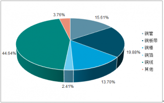 經(jīng)過多年的發(fā)展,我國的銅加工行業(yè)形成了由銅線材、銅板帶材、銅管材、銅棒材和銅箔材為主要細(xì)分行業(yè)的產(chǎn)業(yè)格局,2019年,我國銅加工材的產(chǎn)量達(dá)1,781.00 萬噸,其中銅線材的產(chǎn)量占比最大,占銅加工材 44.64%,銅板帶材、銅管材、銅棒材產(chǎn)量占比分別為 19.88%、 15.61%、13.70%,上述四種產(chǎn)品產(chǎn)量占比超過 90%。