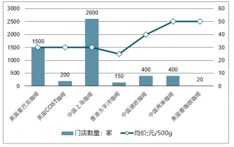 中國市場主要現磨咖啡連鎖品牌的門店數量和價格情況
