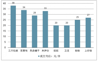 12 月休閑食品行業(yè)主要品牌線(xiàn)上成交均價(jià)