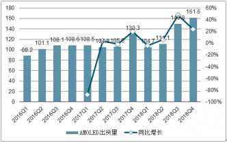 2016-2018年AMOLE面板出貨量及增速