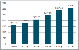2012-2017年我國公共建筑領(lǐng)域樓宇智能化市場(chǎng)規(guī)模(億元)