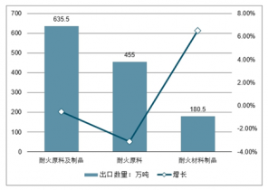 2019年耐火原料及制品出口貿(mào)易額創(chuàng)歷史新高,達到41.7億美元,同比增長35.6%。全年出口數(shù)量635.5萬噸,同比降低0.54%,其中耐火原料出口量455萬噸,同比降低3.1%;耐火材料制品出口量180.5萬噸,同比增長6.5%,耐火材料行業(yè)逐漸從原料出口向制品出口轉(zhuǎn)變。