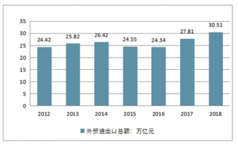 2012-2018年中國(guó)外貿(mào)進(jìn)出口總額走勢(shì)
