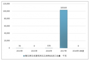 2016年我國蠟石碑石或建筑用石及其制品品進口總量570千克 ,2017年進口總量103163千克 ;2019年1季度進口總量-千克 。