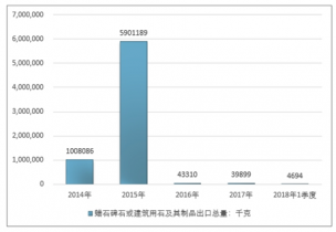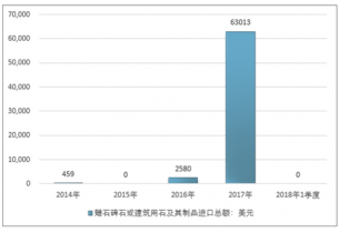 2016年我國蠟石碑石或建筑用石及其制品品出口總額47158美元,2017年出口總額18010美元;2019年1季度出口總額13958美元。
