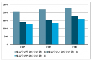 2015-2017年中國建筑設計甲級企業數量、乙級企業數量及丙級企業數量情況