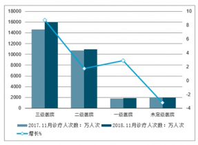 2018年11月份全國醫(yī)療衛(wèi)生機構(gòu)按醫(yī)院等級分診療人數(shù)