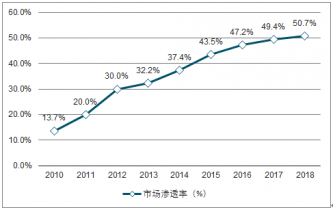 2010-2018年中國工程機械租賃行業(yè)滲透率