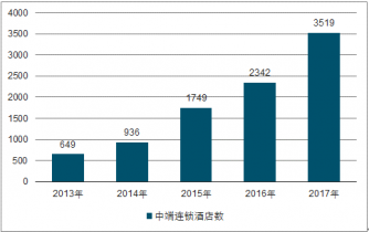 2013-2017年中國中端連鎖酒店數(shù)量變化情況(個(gè))