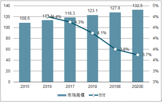 2019年全球偏光片市場規模預計為123.1億美元,同比增長4.1%,預計2020年全球偏光片市場規模可達132.5億美元,2015至2020年市場規模年復合增長率約為3.4%,主要來自大尺寸LCD面板對偏光片需求的增加,以及OLED應用滲透帶來的增量需求。