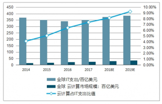 全球云計(jì)算(公有云)市場(chǎng)規(guī)模及其占整體 IT 支出比例