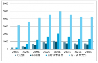 2019-2026年中國5G無線側(cè)、網(wǎng)絡(luò)側(cè)、5G新增資本開支、合計(jì)資本支出預(yù)測