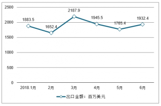 2018年1-6月中國液晶電視顯示板出口金額情況