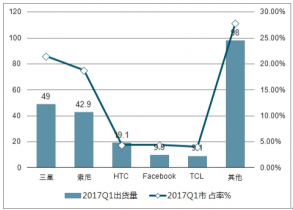2017Q1全球 VR 硬件廠商出貨量及市場(chǎng)份額