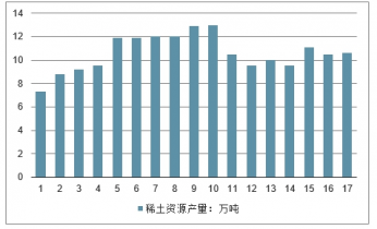 2001-2017年中國稀土資源產量情況(單位:萬噸)