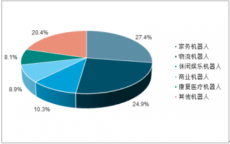 2019年我國家用服務(wù)機器人、醫(yī)療服務(wù)機器人和公共服務(wù)機器人市場規(guī)模分別為8.9億美元、5.1億美元和4.4億美元,家用服務(wù)機器人和公共服務(wù)機器人市場增速相對領(lǐng)先。從細分領(lǐng)域來看,家務(wù)機器人占主導(dǎo)位置,市場份額為27.4%,其次是物流機器人,市場份額為24.9%。隨著人口老齡化腳步加快,以及醫(yī)療、教育需求的持續(xù)旺盛,康復(fù)醫(yī)療及教育等領(lǐng)域存在市場潛力和發(fā)展空間。