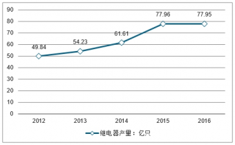 2012-2016年中國繼電器產(chǎn)量走勢