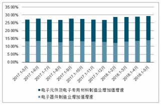 2017-2019年中國電子元件及電子專用材料制造業(yè)增加值增速、電子器件制造業(yè)增加值增速走勢