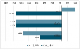 2017-2018年上半年電信設(shè)備制造商凈利潤(rùn)情況(單位:百萬(wàn)美元)
