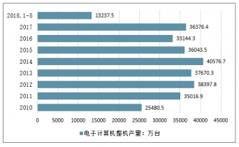 2010-2018年5月中國電子計算機整機產(chǎn)量情況