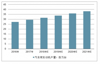 隨著中國經濟的快速增長、城市化持續推進及家庭消費水平不斷提高,中國汽車行業呈現強勁增長勢頭。根據中國國家統計局的資料,2016年,就以汽車制造為主要業務的工業企業所產生的收益而言,汽車制造業在中國主要行業板塊中排名第三。顯然,中國汽車行業的快速增長促進了汽車發動機市場的增長。據數據顯示,中國汽車發動機產量從2011年的17.9百萬臺增至2016年的27.2百萬臺,年復合增長率為8.7%。到2021年中國汽車發動機產量將達到38.2百萬臺,年復合增長率為7%。