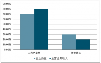 從百強(qiáng)企業(yè)分布來看,珠三角、長三角、環(huán)渤海三大產(chǎn)業(yè)帶聚集了70%的企業(yè),這些企業(yè)的主營收入更是占到80%,區(qū)域發(fā)展不均衡可見一斑。