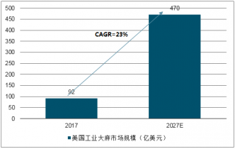2017年北美合法工業大麻銷售額達92億美元,在2019年達到122億美元;2019年美國的工業大麻市場迎來持續的增長,預計2019年將增長38%,達到169億美元,到2027年將超過470億美元。