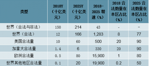 2018-2025Y合法大麻市場規模