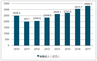 2010-2017年調(diào)味品行業(yè)銷售收入及增長率變化趨勢圖