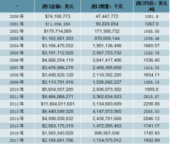 2000-2017年我國棉花進口情況
